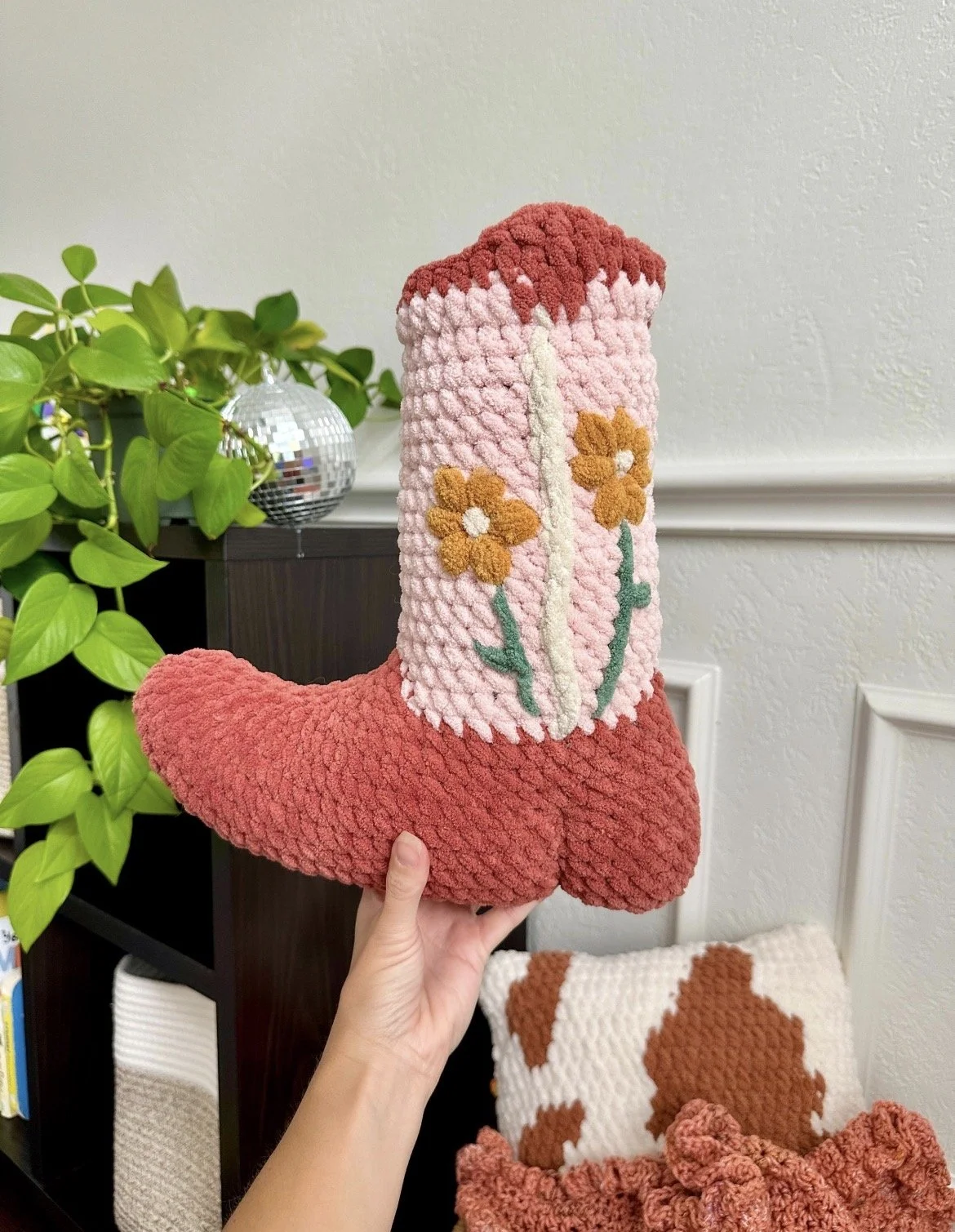 Before you get started, be sure to check out Bri’s shop on Etsy to see the rest of her beautiful Western crochet pattern collection (like this amazing Darlin Boot Pillow)!