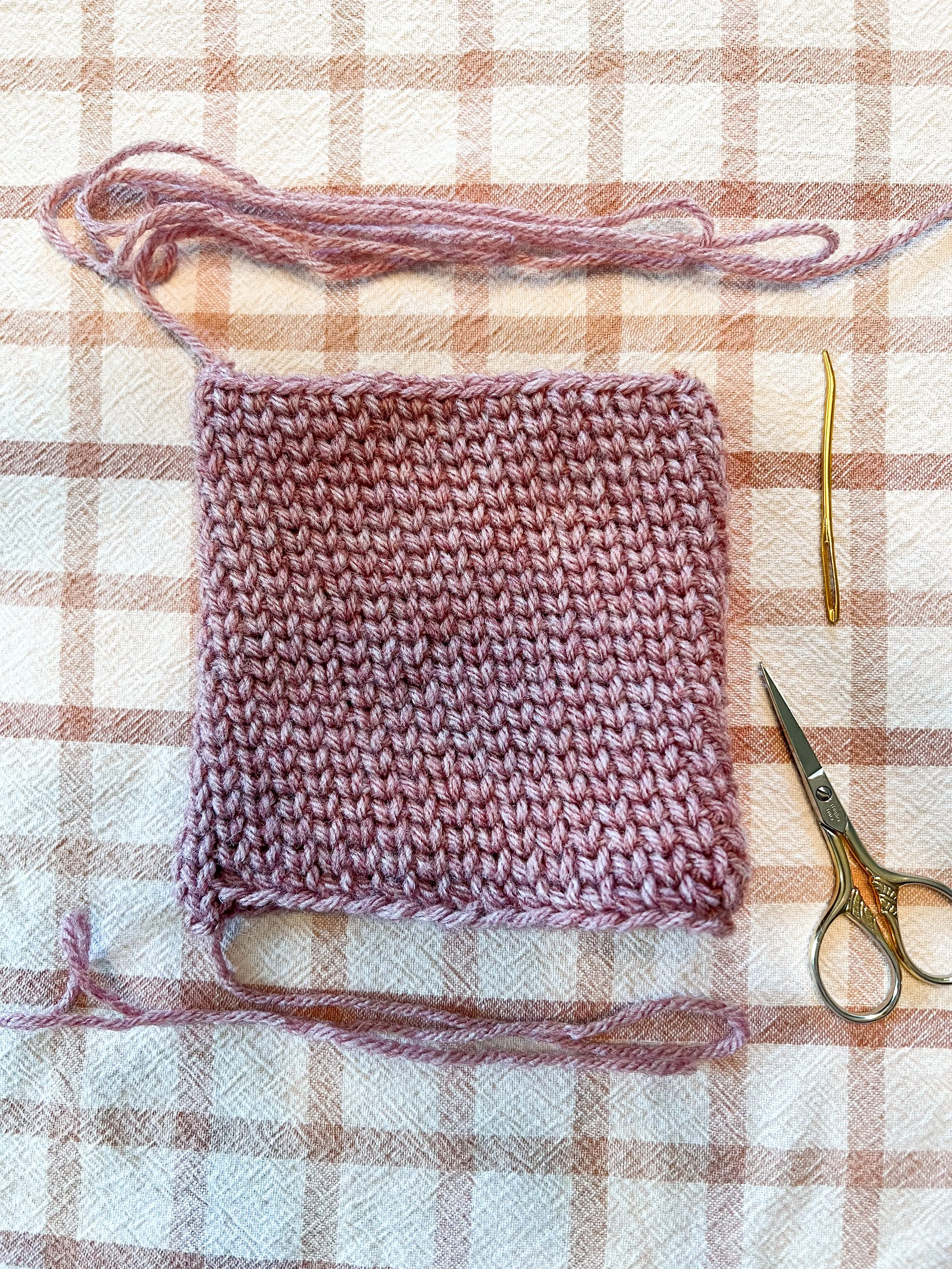 14 sts x 18 rows = 4” (10 cm) in waistcoat stitch